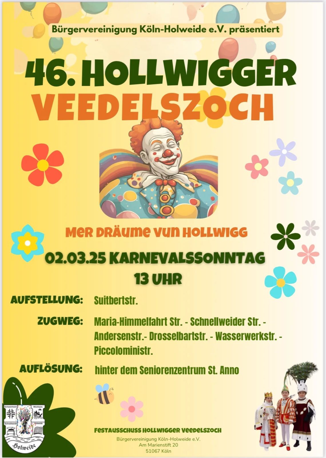 Was für ein großartiger 47. Veedelszoch liegt hinter uns und eines steht fest: So lang war er gefühlt schon seit Jahrzehnten nicht mehr. Wagen um Wagen zog durch Holweide und es wurde einfach nicht weniger. Die Vielfalt konnte sich sehen lassen: liebevoll gestaltete Festwagen, kreative Gruppen und jede Menge fantasievolle Kostüme. Da wurde geschunkelt, gelacht und natürlich eifrig Kamelle gesammelt. Besonders schön war die große Zahl an Kindern – am Zugweg ebenso wie mitten im Geschehen. Ob als kleine Prinzessinnen, Superhelden oder fantasievolle Eigenkreationen: Der jecke Nachwuchs hat gezeigt, wie lebendig unser Veedel ist. Ein herzliches Dankeschön geht an alle, die diesen Tag möglich gemacht haben, an die Organisatorinnen und…