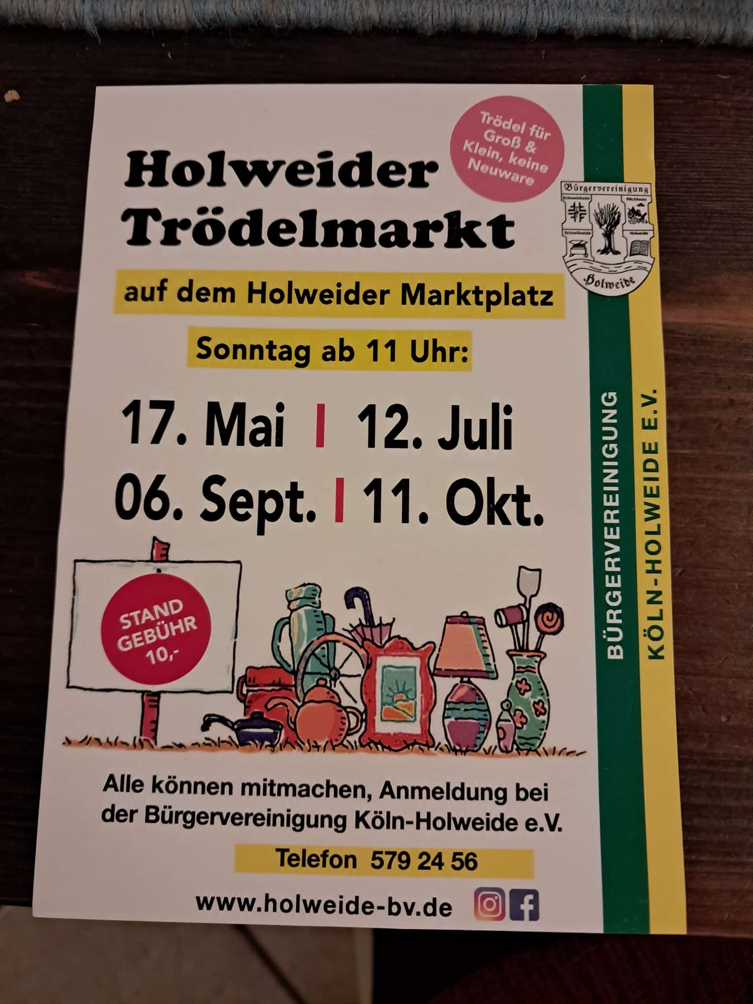 Seit 2024 besteht nun der zentrale Trödeltag auf dem Holweider Marktplatz. Jeder kann mitmachen, egal ob Groß oder Klein. Einzige Vorgabe: Es darf keine Neuware angeboten werden.
